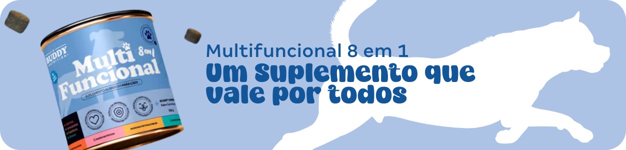 Aqui na Tudo de Bicho, recomendamos o Multifuncional da Buddy Nutrition, um suplemento completo que atende diferentes necessidades do seu pet com uma única dose diária.